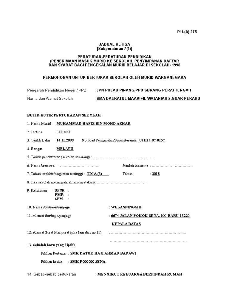 Moshims Borang Pertukaran Sekolah Menengah Di Selangor Otosection